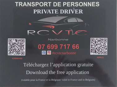 Attention : RC VTC Narbonne n'est pas un taxi conventionné. Les transports médicaux effectués ne sont pas pris en charge par la Sécurité Sociale (CPAM). Le paiement reste à la charge du client.